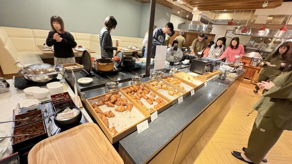 今回残念ながらビュッフェレストラン「ハナハナ」のディナーが予約で一杯だったので、朝食のみ。朝食でハンバーガーを作ってくれるビュッフェレストランはレアですよね。美味しかったので2つ食べてしまいました。