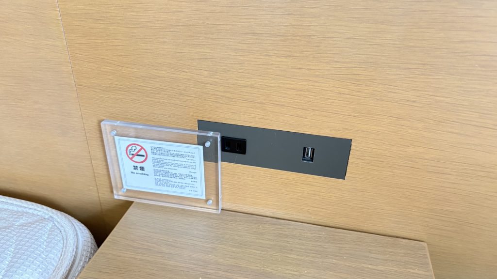 コンセントは枕元にあるので、携帯の充電も安心です。