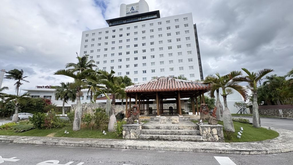 ホテルの外観は、少し大きめのビジネスホテルのような感じ。あまりリゾート感はないが、泊まるだけであればコスパ的には最強のホテル!