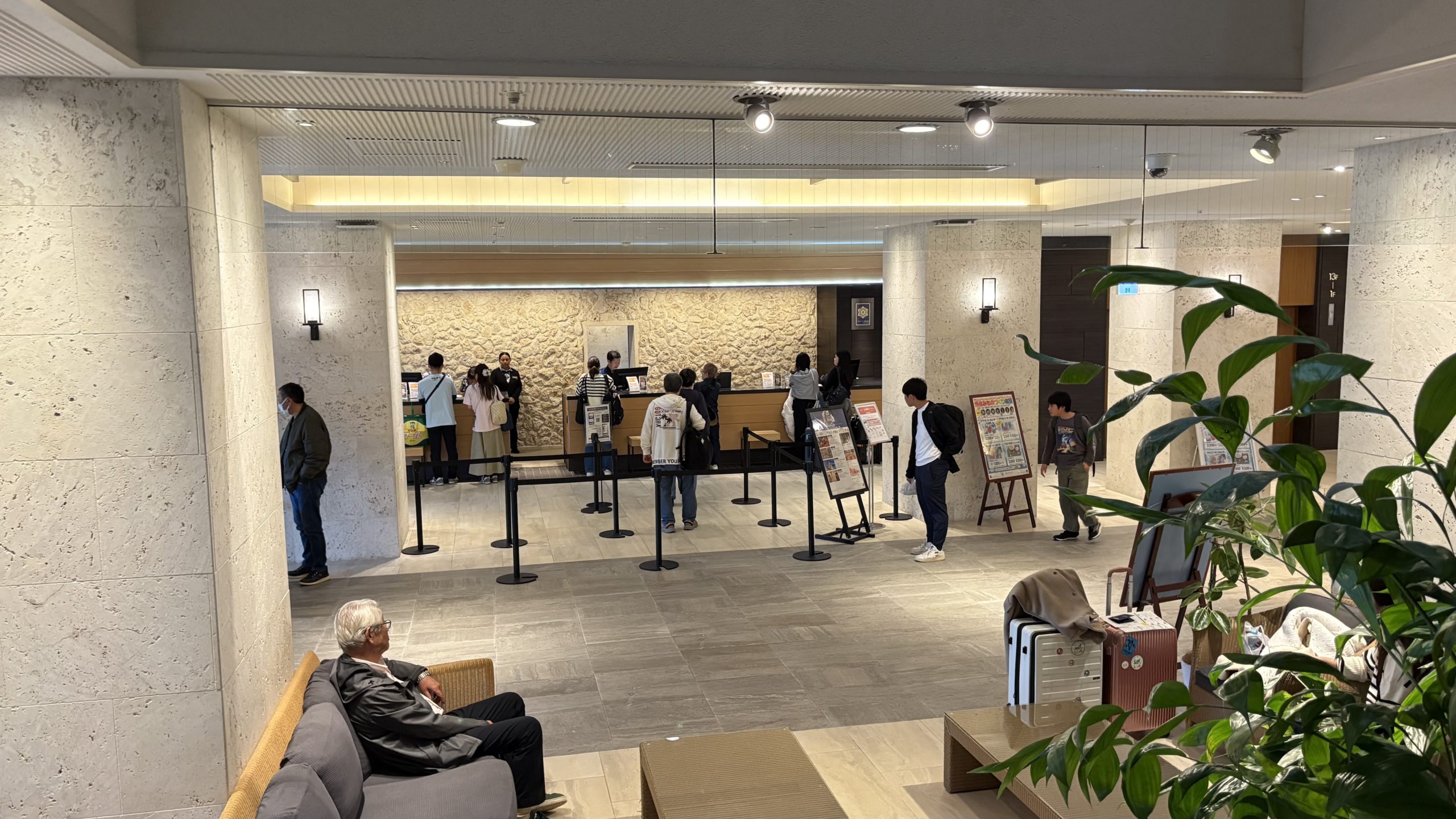 年末年始ということもあり、フロントは観光客で混雑。ロビーの雰囲気もどちらかというとビジネスホテルに近い。